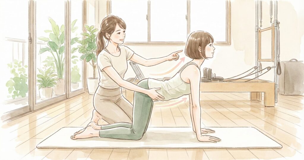 「骨盤よりも肋骨(胸郭)を高くしてみて。