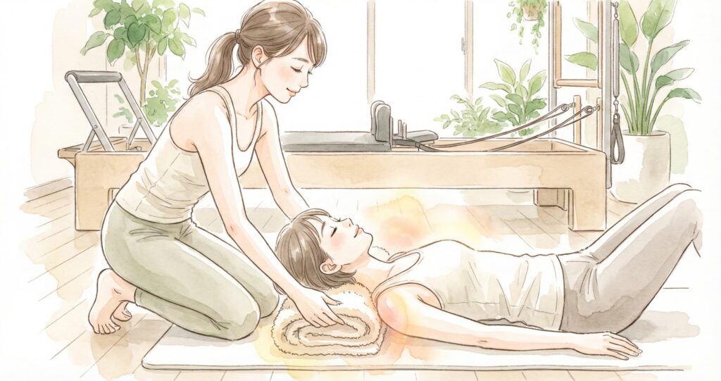 「はぁ〜♪」というリラックスした呼吸をゆっくりとしてもらう。