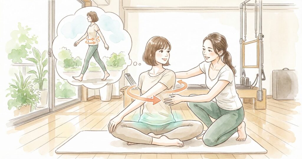 歩行に必要な「捻りの可動域」と「コントロール力」を引き出します。